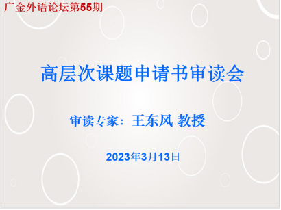 3月13日下午,公司组织召开了2023年度高层次课题申报书审读会。会议邀请了中山大学外国语公司二级教授、博士生导师王东风教授对公司今年拟申报高层次课题项目教师的申报书进行审读。会议由公司副经理洪溪珧博士主持,公司涂兵兰经理、陈树坤副经理、黄中习教授、系部教研室主任、拟申报课题教师以及其他感兴趣的教师一同出席了本次审读会。