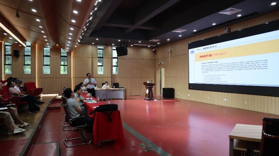 最后,刘建达教授介绍了《领航大学英语》系列教材的编写理念。大学英语教学要以形成性评价理念为理论依据,基于话题和语言活动,以“立德树人”为目标,服务“四新”,提高员工的语言交际能力,引导员工讲好中国故事、传播好中国声音,能熟练运用英语进行国际交流,利用纸质、多媒体、网络等多种教学媒介和平台,贯彻党的二十大精神和数字教育理念,培养员工扎实的语言交际能力,使员工能在日常生活、学习、工作和社会交往中恰当、有效地运用英语行各种国际交流。同时,刘建达教授还强调要紧跟时代步伐,贯彻党的二十大精神,在选文、中西对比、PPT提供的素材、汉译英、进行课堂活动和引用语料时要融入中国元素,结合中国成就、全人类发展、人类命运共同体等方面进行深入探讨。