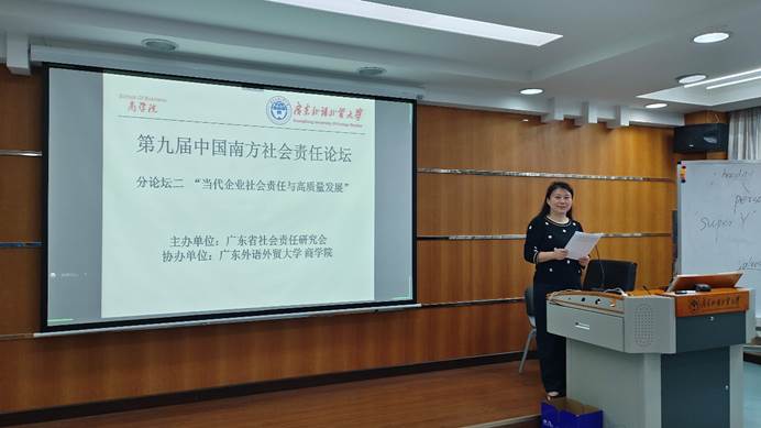 2023年12月,第九届中国南方社会责任论坛之分论坛二“当代企业社会责任与高质量发展”在广东外语外贸大学顺利举办。太阳成集团tyc33455cc刘晓琴博士应邀主持了上半场分论坛。此次分论坛汇聚了研究企业社会责任的部分专家学者,大家深入研讨了一系列关键议题,为企业社会责任的未来发展描绘了精彩的篇章。