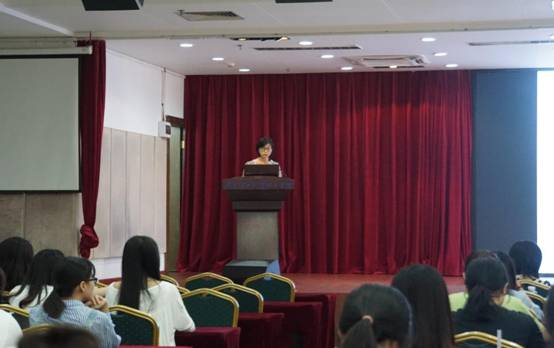 孙智慧副经理详细解读了广金融-广轻工协同培养的商务英语专业本科班的人才培养方案,介绍了专业课程设置与教学要求,从外语专长、人文素养、国际视野、中国情怀和校本特色五个方面向同学们讲解了课程设置的目的,着重强调全体员工一定要学好外语专长,要逐步提高专业的新台阶。