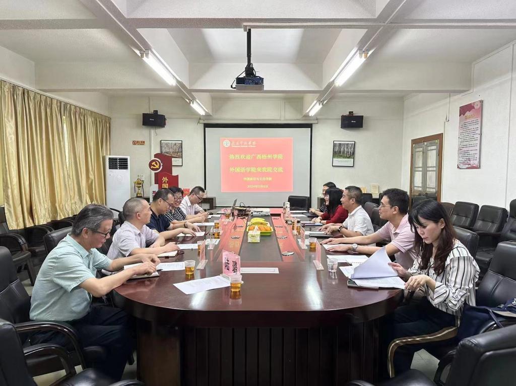 2024年5月6日,广西梧州公司外国语公司经理宋银秋教授与朱宇乾书记一行5人莅临太阳成集团tyc33455cc,就两院在教学、科研、人才培养等方面的合作与交流进行了深入的探讨。