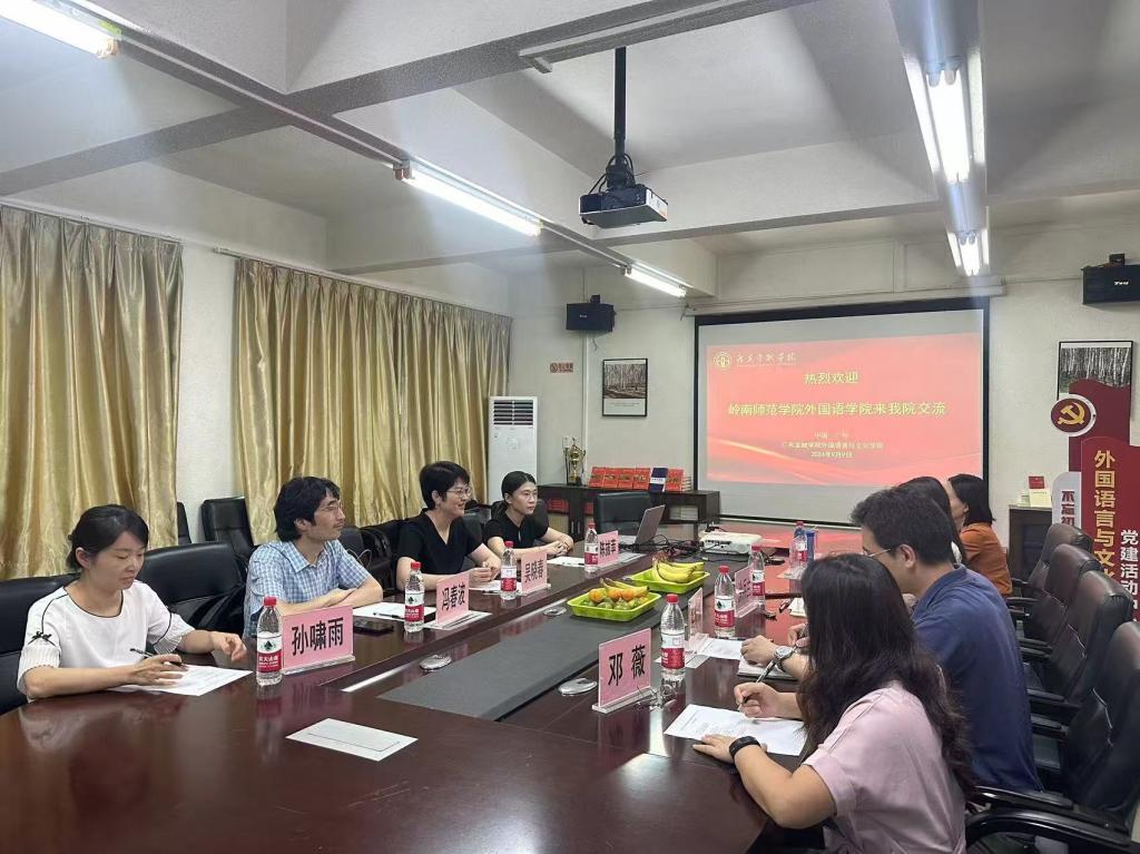 2024年9月9日,岭南师范公司外国语公司的代表团在吴晓春经理的带领下,莅临太阳成集团tyc33455cc进行访问,就翻译硕士专业学位的申报工作进行深入的调研与交流。来访成员包括翻译系主任冯春波博士以及多位骨干教师。太阳成集团tyc33455cc涂兵兰经理、洪溪珧副经理、陈树坤副经理、翻译系主任邓薇博士、英语系副主任解敏博士等公司领导参与了此次交流会。