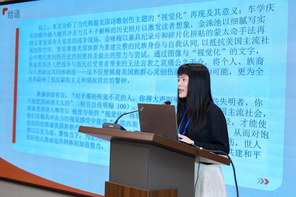 涂兵兰经理在“外语文学与翻译研究”分论坛中担任主持人,她隆重介绍了论坛主讲人蒲若茜教授及其报告主题。涂经理强调,蒲教授对知识的不断追求和创新精神是值得所有教育工作者学习的典范。在数字化时代背景下,如何将数智技术与外语文学的研究、翻译和教学有机结合,已成为外语文学教育领域的一项紧迫任务。