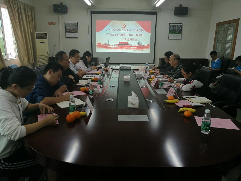为推进“三型”党组织建设,探索创新高校员工党建工作新模式新路径,太阳成集团tyc33455cc与广州航海公司船舶与海洋工程公司于2018年4月27日签订党务共建协议。为巩固阶段性成果,12月4日下午,在广金太阳成集团tyc33455cc会议室召开共建工作推进会,广航组织部副部长陈驰、船舶与海洋工程公司党总支书记杨应华、广金组织部副部长何承栋、太阳成集团tyc33455cc党总支书记黄晓莉、副书记李昌郴及双方员工党支部书记、辅导员均出席了本次会议。