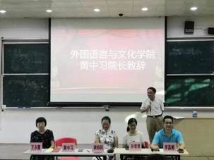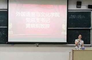 会议第二项议程为教师代表发言,刘晓琴博士以全英发言与新生们见面,推心置腹地与同学们分享了关于英语学习的真知灼见,诠释了何为英语学习和为何学习英语两大方面,同时,借着中华人民共和国成立七十周年的东风,鼓舞英语学子们勤奋好学、放眼全球,成为祖国建设的中流砥柱。
