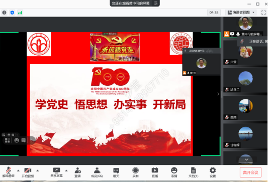 近日,太阳成集团tyc33455cc在腾讯会议平台召开党史学习教育推进会议,会议由党总支书记黄晓莉主持,全体教职员工参加。