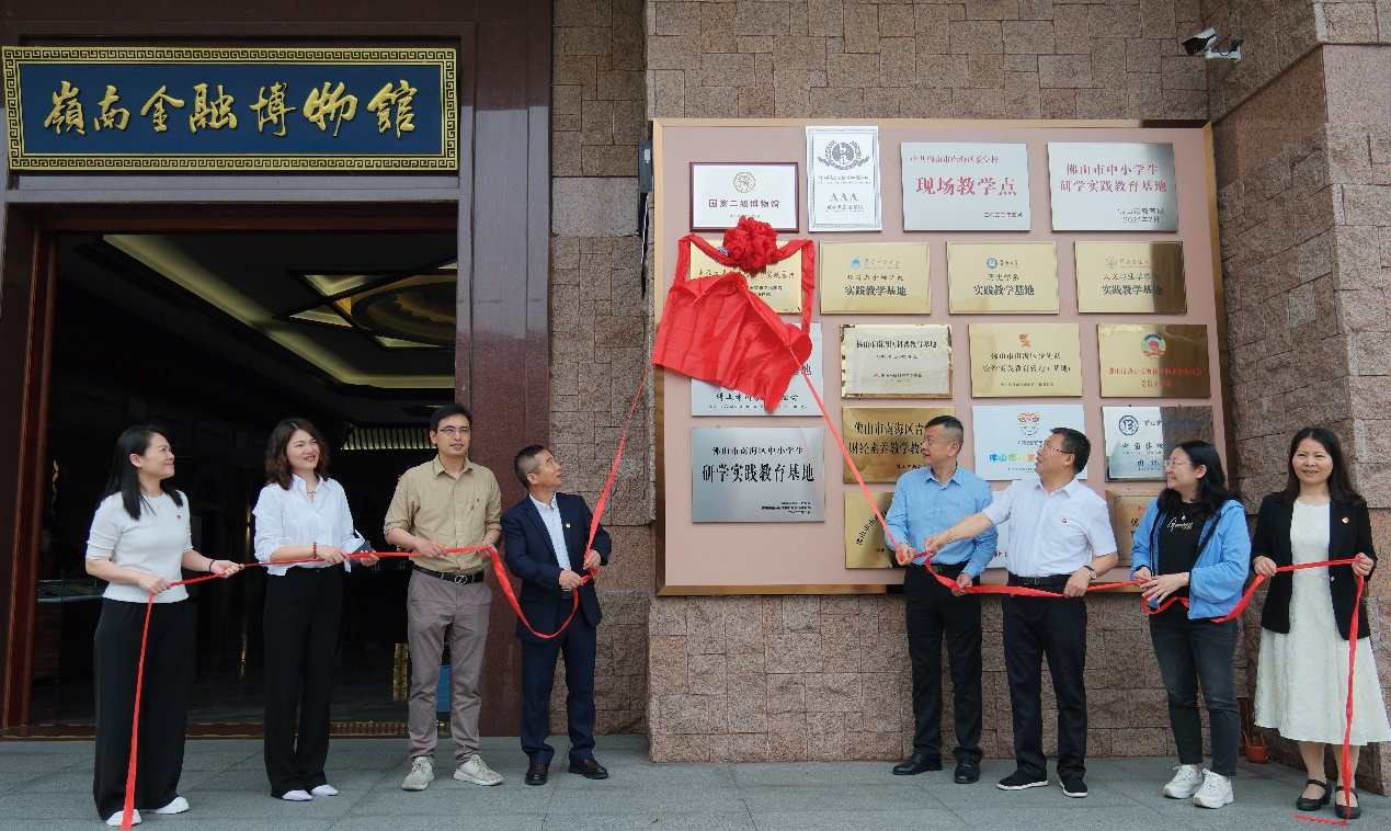 广东省文化和旅游厅博物馆与社会文物处处长颜永树、佛山市岭南金融博物馆馆长丁方忠、副馆长李士英、太阳成集团tyc33455cc党委书记黄庆雄、副经理陈树坤、洪溪珧、党委副书记王丹等领导嘉宾共同为实践基地揭幕。红绸掀开的一刻,标志着太阳成集团tyc33455cc与佛山市岭南金融博物馆在思政教育、文化传承领域的合作迈向新高度。