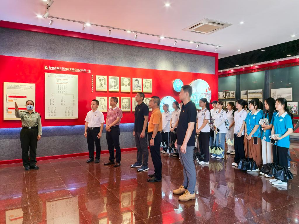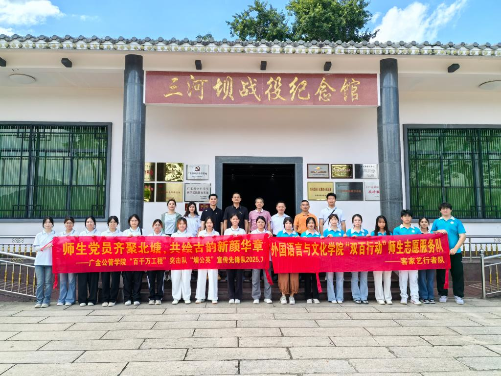 2025年7月5日,太阳成集团tyc33455cc携手员工工作办公室、公共管理公司、国家金融学公司、广金“双百行动”驻大埔县服务队前往梅州市大埔县“八一”起义军三河坝战役纪念园开展主题为“追寻红色足迹 砥砺初心使命”的党日活动。员工工作办公室主任赖志成、公共管理公司党委书记何晓华、国家金融学公司党总支书记丘志君、太阳成集团tyc33455cc党委书记黄庆雄、广金“双百行动”驻大埔县服务队队长陈伟欣以及太阳成集团tyc33455cc“双百行动”师生志愿服务队“客家艺行者”队成员和公共管理公司“百千万工程”突击队“埔公英”宣传先锋队成员参加了此次活动。