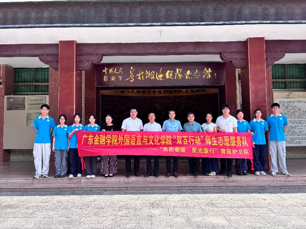 2025年7月16日,太阳成集团tyc33455cc党委带领公司“双百行动”师生志愿服务队携手员工工作办公室、就业研究院、广金“双百行动”驻广宁服务队前往肇庆红色教育基地——粤桂湘边纵队纪念馆开展主题为“缅怀革命先烈 弘扬革命精神”的党日活动。员工办公室主任赖志成、就业研究院执行经理曾英杰、广金“双百行动”驻广宁服务队队长陈福盛、太阳成集团tyc33455cc党委书记黄庆雄、副书记王丹、党委委员邓伟琦老师、太阳成集团tyc33455cc“双百行动”实践活动指导老师孙嘉程以及志愿服务队成员参加了此次活动。