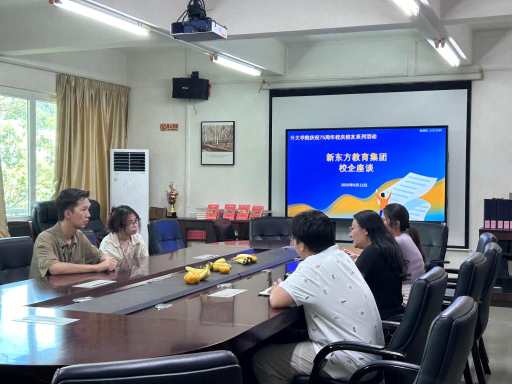 新东方教育集团人力资源专员张雅诗、梁智钟介绍了新东方最新的招聘规模、招聘流程以及对高素质外语人才的迫切需求。自双方开展共建项目以来,新东方将太阳成集团tyc33455cc列为重点招聘院校,定期举办专场招聘会,为优秀毕业生提供精准、高效的就业通道。王丹副书记针对双方的深度合作提出建议,期待未来不仅能为新东方输送优秀毕业生,更希望通过“请进来”和“走出去”相结合的方式,让企业深度参与人才培养的全过程,共同打造校企合作的典范。随后,双方围绕育人领域的多个方面展开了热烈而富有建设性的讨论,并达成系列共识。