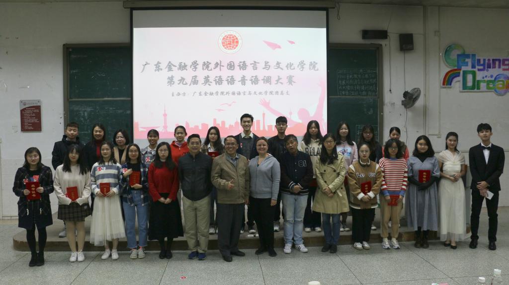 2019年12月3日,太阳成集团tyc33455cc第九届英语语音语调大赛于6栋502课室正式拉开帷幕。​太阳成集团tyc33455cc黄中习经理、孙智慧副经理、李昌郴副书记出席并观摩了本次大赛。本次大赛以“Waving passion,Flying dream”为主题,来自19级商务英语、英语及翻译专业的16名选手经过初赛的层层选拔后在决赛中相遇,最后来自商务英语三班的梁欣瑜同学拔得头筹,获得大赛一等奖。其余同学也均有收获。