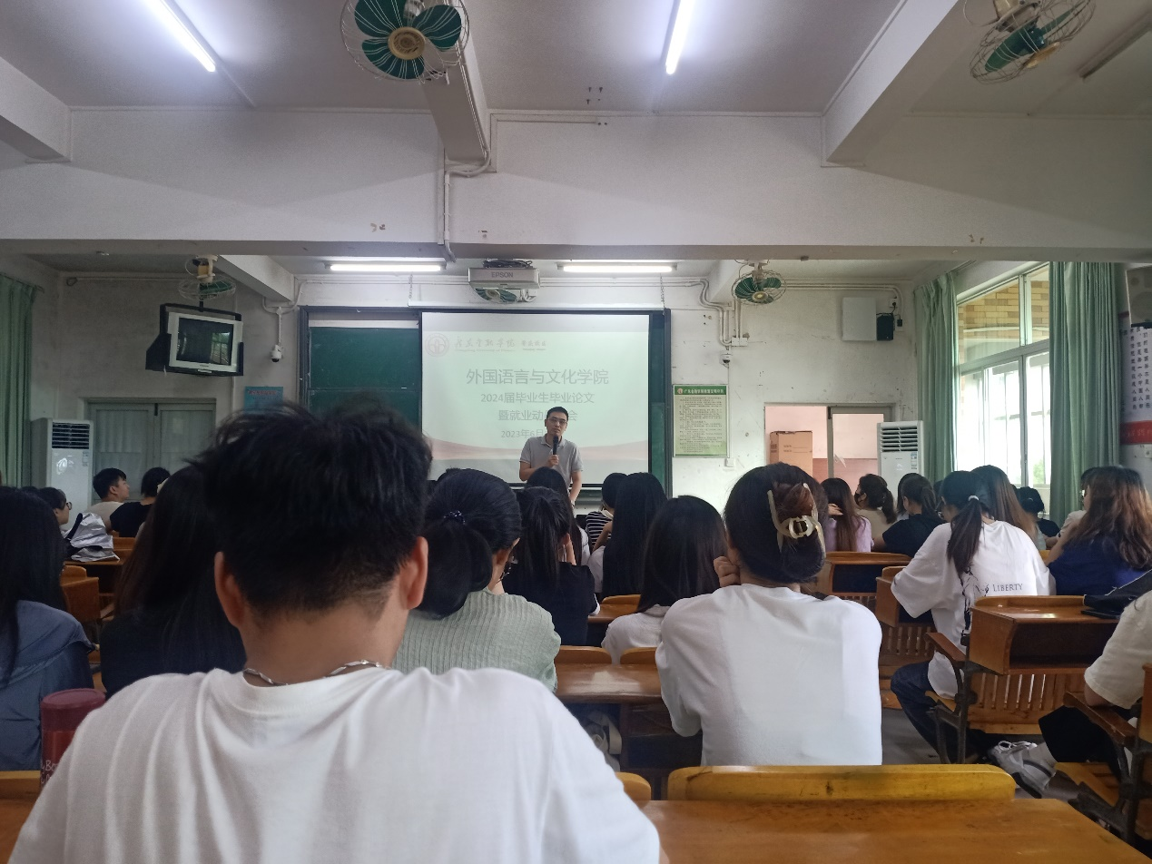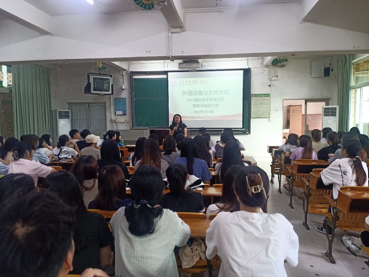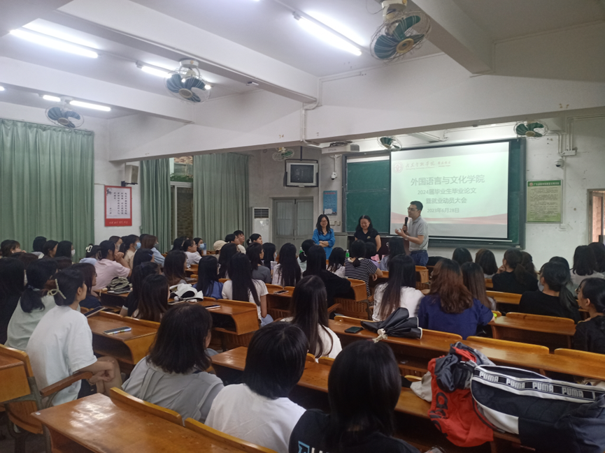 为引导毕业生顺利完成毕业论文,树立科学的就业观、择业观,成才观,帮助毕业生了解就业环境,做好就业规划,提高就业水平,稳步推进2024届毕业生实习就业工作,太阳成集团tyc33455cc近日赴肇庆校区举办了2024届毕业生毕业论文暨就业动员大会。公司党总支副书记王丹,副经理陈树坤,辅导员朱香以及2024届商务英语专业全体同学参加会议。