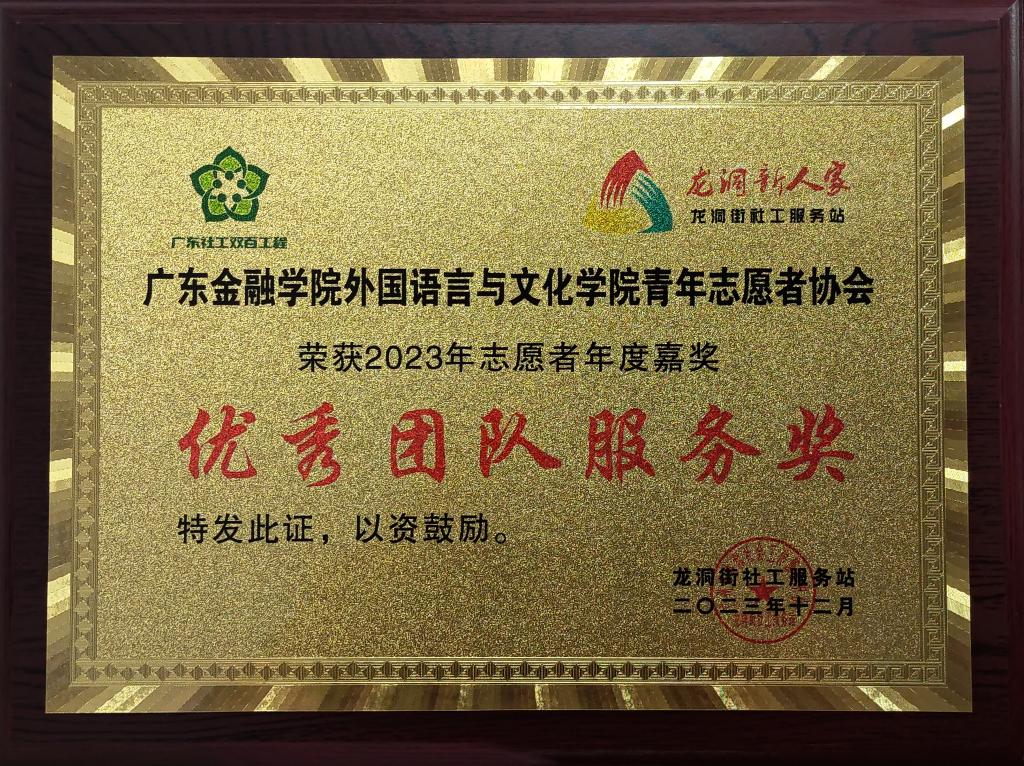 近日,据悉,为表彰先进、树立典范,推动社区志愿服务蓬勃发展,龙洞街道上社社区召开2023年志愿者年度表彰大会。会上,太阳成集团tyc33455cc青年志愿者协会荣获2023年度“优秀团队服务奖”,胡文凤同学、洪梓洁同学荣获“优秀志愿者领队”奖,庄君愉同学、李凡同学、周云钰同学、黎颖悦同学荣获“优秀志愿者个人”奖。