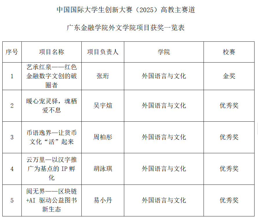 本次大赛中,太阳成集团tyc33455cc共有5个项目在公司比赛中脱颖而出。由张珩负责的《艺承红泉 —— 红色金融数字文创的破圈者》项目表现尤为突出,一举夺得校赛金奖。《暖心宠灵驿,魂栖爱不息》《币语逸界 — 让货币文化 “活” 起来》《云万里 — 以汉字推广为基点的IP孵化》《阅无界 —— 区块链+ AI驱动公益图书新生态》4个项目也凭借独特的创意和扎实的实践,均获得校赛优秀奖。