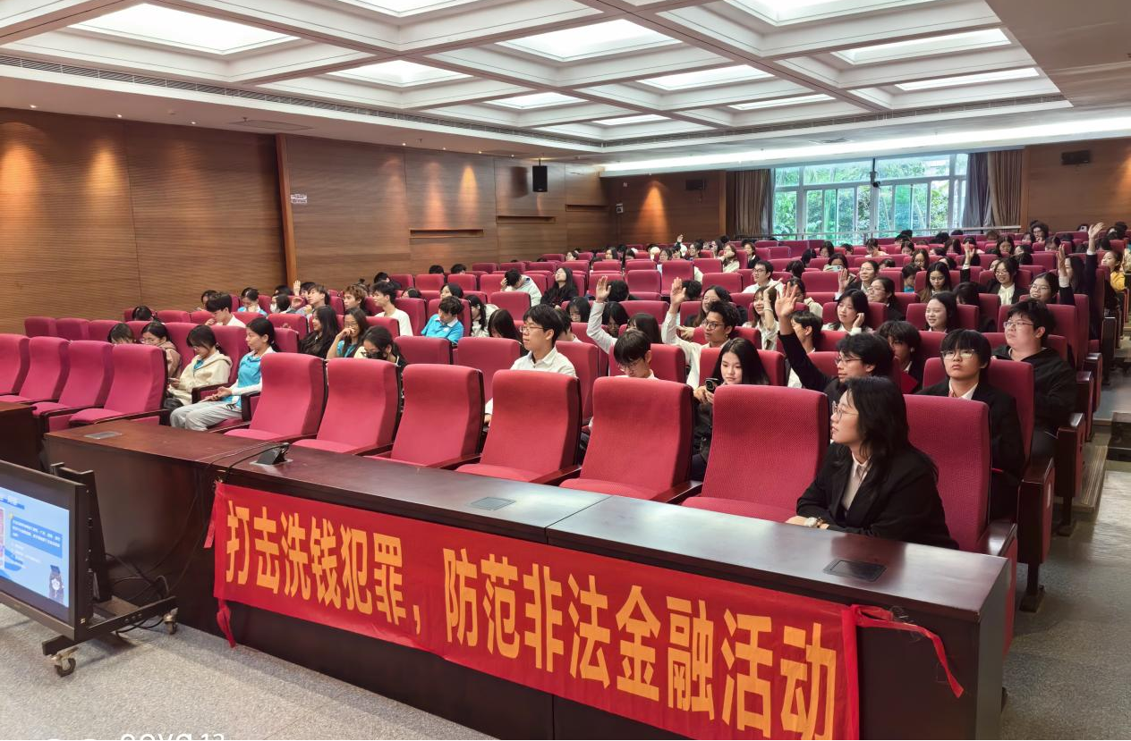 在互动交流环节,现场同学踊跃提问,围绕“如何辨别正规与非法金融产品”、“遭遇非法集资或诈骗后应如何维权”、“外语专业员工进入金融行业的路径与准备”等热点问题展开深入交流,现场讨论氛围热烈,掌声不断。