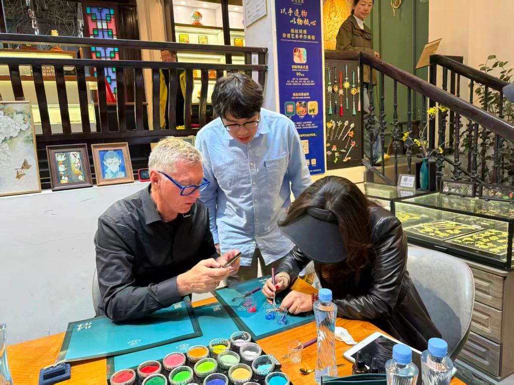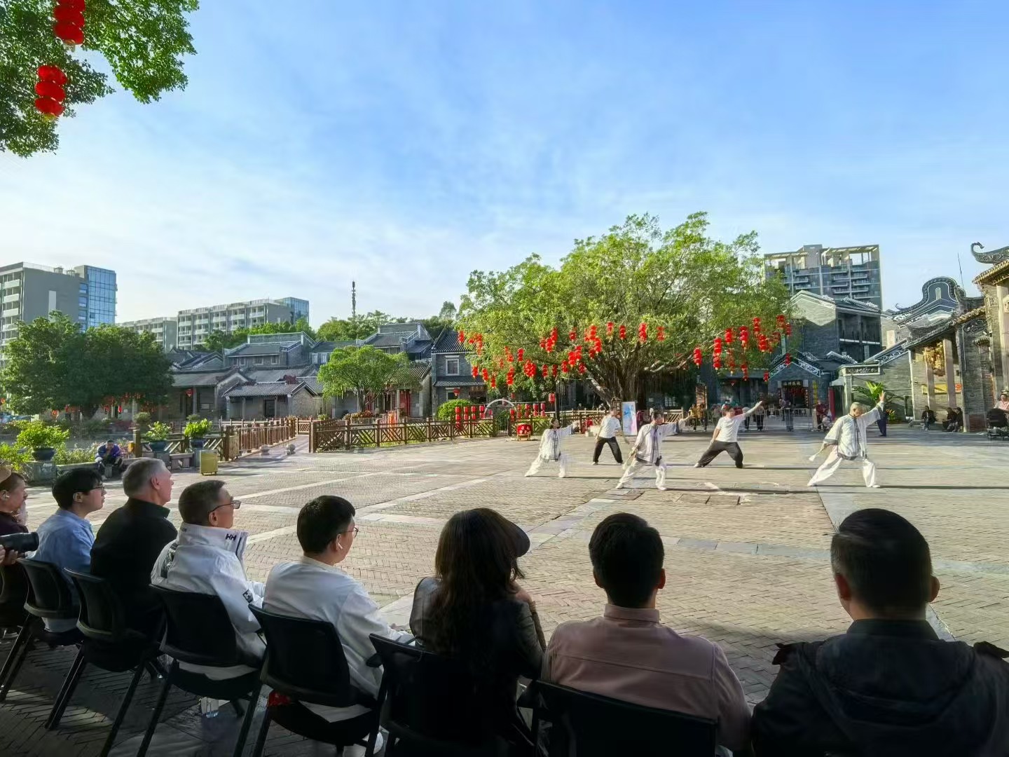 活动期间,安东尼·埃德加与广东省武术协会领导等一行人先后走访了均安牛仔城、李小龙乐园、岭南印象园、广东商公司等多地,实地探访牛仔产业全链条,体验功夫学堂、观摩太极展演、观看醒狮功夫秀与李小龙诞辰85周年纪念演出,参观李小龙纪念馆、淡隐霍公祠及非遗展示区,深入了解岭南产业特色、民俗文化、建筑底蕴与非遗技艺。此外,还举行了“武术文化国际传播”专题座谈会及岑能大师诞辰百年纪念活动,围绕武术传承与国际传播等议题交流。许浩哲全程负责翻译工作,保障跨文化交流与研讨顺畅推进。