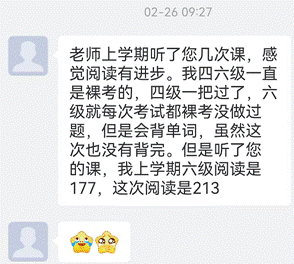 实证有效:据往届员工反馈,凡坚持上课并认真完成学习任务的同学,普遍收获颇丰:大学英语四六级成绩明显跃升,尤以阅读与写作提分最为突出。有同学在考研英语中获得了81分的高分。