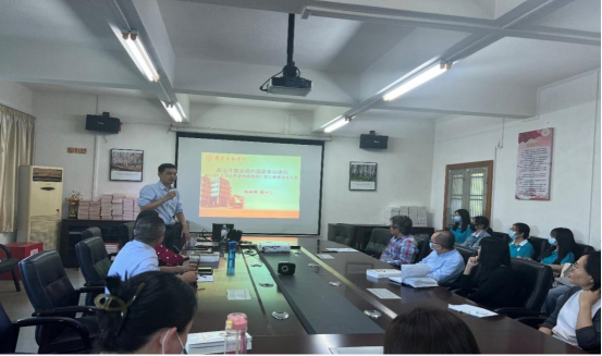 会上,刘传江博士从“课程思政”的内涵解读以及术语翻译标准化视角对目前较为通行的“课程思政”的几种英译做了评析。钟泽楠老师基于插图手势的多模态符号分析了《习近平谈治国理政》第四卷中的插图符号分布。员工暑期“三下乡”社会实践队分别做了项目汇报,对暑期实践项目和实践成果进行回顾总结。