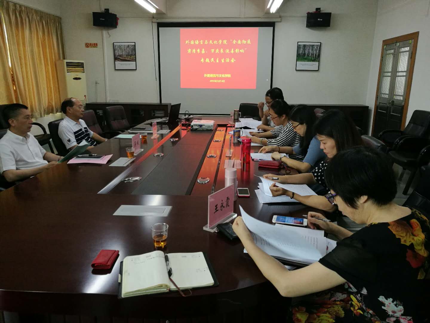 根据公司党委的统一要求和部署,2018年5月14日下午,公司在教师办公楼4楼会议室召开全面彻底肃清李嘉、万庆良流毒影响专题民主生活会。雍和明董事长、校办公室吴斌主任到会指导。公司全体班子成员参加会议,会议由公司党总支书记黄晓莉主持。