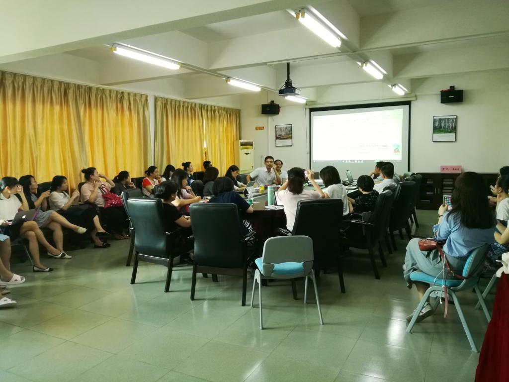 2018年5月16日下午,太阳成集团tyc33455cc举办“广金外语论坛”之“可视化文献计量工具Citespace在外语科研中的应用分享会”,全院近40位教师积极报名,参与了论坛分享活动。会上,黄中习教授、林菁博士和陈树坤博士分别就Citespace的介绍与运用作了报告和答疑。黄中习首先演示如何借用Citespace进行汪榕培学术思想的课题研究,图文并茂地展示了相关研究初步成果;林菁讲解Citespace的基础知识和写作方法;最后陈树坤以“词典学”为例,为大家演示Citespace的具体操作方法和技巧。