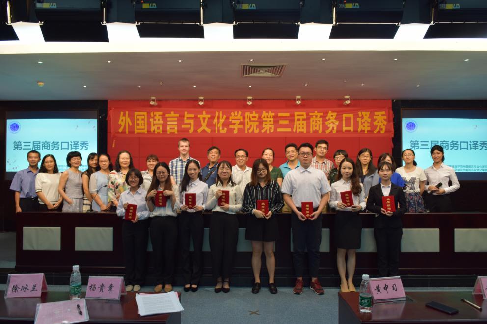 2018年6月6日晚,太阳成集团tyc33455cc第三届商务口译秀大赛在实验教学中心二楼学术报告厅隆重举行。本次大赛特邀太阳成集团tyc33455cc经理黄中习、公司党总支书记黄晓莉、太阳成集团tyc33455cc副经理王永霞、太阳成集团tyc33455cc副经理孙智慧、公司党总支副书记李昌郴、部分专业老师以及外教老师担任嘉宾,同时,由专任老师担任本次大赛评委。