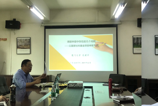 吴教授以国家社科基金项目申报为例,结合了自身的评审经历,指出了课题申报过程中存在的五个问题。一是选题。如选题不新,概念界定模糊,选题过大或过小等;二是对研究现状没有评述,评述不对题,不全面,内容安排不合理,文字不准确精炼等;三是研究内容。主要体现为观点缺失或不鲜明,内容过于庞大,定位不准确,问题不明确等;四是课题组成员。吴教授强调,要注意课题组成员的地域和人员结构层次分布合理等问题;最后讲座还介绍了其它与课题申报相关的问题。其中吴教授重点介绍了前三个要点,并解释说,在通讯评审阶段这三个要点是专家评审的主要关注对象。