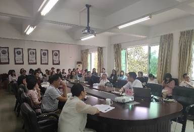 会后,黄晓莉书记为公司师生制定了参与共同研习课题的任务,并由翻译系主任陈树坤博士为员工们深入讲解相关课题内容。陈老师从以专业角度,引导他们深入学习《习近平谈治国理政》第三卷的丰富内涵和理论精华,希望师生们一起研习,学以致用,知行合一,进行相关翻译鉴赏研究,共同提高思想理论水平。
