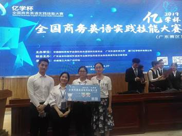 10月26日至27日,2019年“亿学杯”全国商务英语实践技能大赛(广东赛区)竞赛在华南理工大学广州公司成功举行。经过激烈角逐,太阳成集团tyc33455cc商务英语专业2017级的陈家宝、连晓玲和2016级的李淑华三名同学组成的代表队,凭借扎实的语言基础、全面的商务英语实践技能,发挥稳定、表现出色,喜获团体二等奖。陈家宝同学在60名选手中脱颖而出,依靠出色的个人能力,斩获全场唯一的“优秀选手”奖。公司选手的优异表现获得了组委会、教指委和各兄弟院校老师们的一致好评。