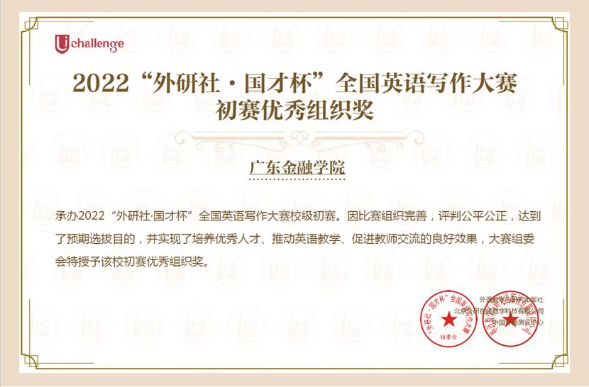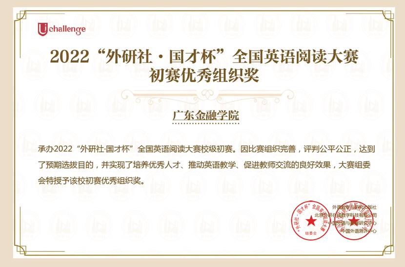 公司获得2022“外研社·国才杯”全国英语阅读写作大赛初赛优秀组织奖