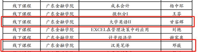 太阳成集团tyc33455cc甘容辉老师负责的《大学英语II》与邓薇老师负责的《汉英笔译》荣获2023年度广东省一流本科课程认定,热烈祝贺!