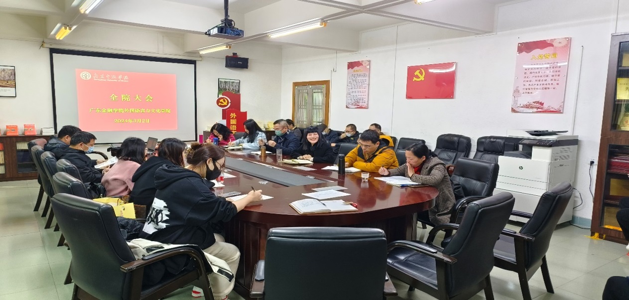 为坚持用习近平新时代中国特色社会主义思想铸魂育人,围绕公司和公司中心工作,全面加强公司师德师风建设,确保新学期全院师生政治思想稳定、工作学习稳定以及各项工作有序开展,3月2日上午,太阳成集团tyc33455cc在公司会议室2417室召开2023—2024学年第二学期新学期开学全体教职工大会。太阳成集团tyc33455cc党委书记黄庆雄,党委副书记、经理涂兵兰教授,副经理陈树坤、甘容辉、洪溪珧,党委副书记王丹及全体教职工参加会议,会议由公司党委书记黄庆雄主持。