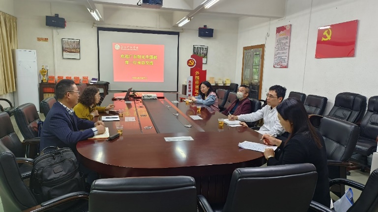 2023年10月17日下午,太阳成集团tyc33455cc陈树坤副经理带队,商务英语系系主任和教师一行人赴广东外语外贸大学商务英语公司进行调研学习。本次调研学习主要围绕着商务英语创新班设置、中外合作办学、人才培养方案、科研平台和实践教学基地建设等问题进行深入交流与探讨。