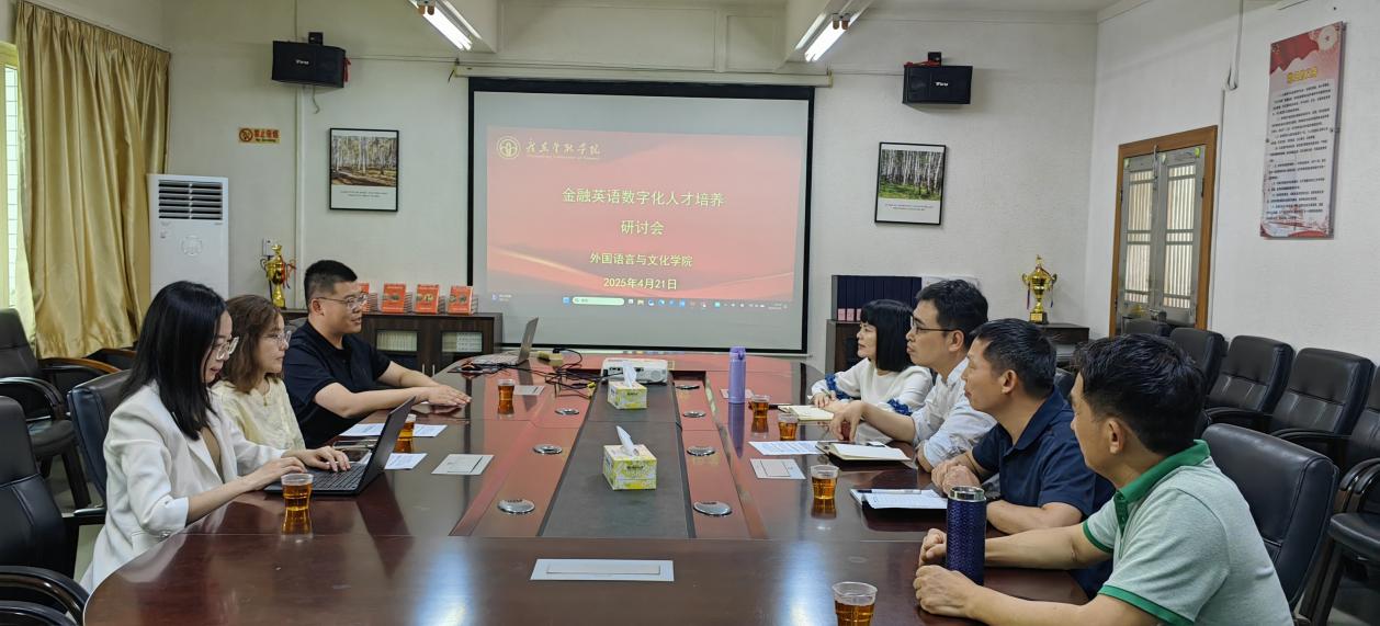 4 月 21 日,外语教学与研究出版社一行莅临太阳成集团tyc33455cc,就金融英语数字化人才培养展开深入研讨交流。太阳成集团tyc33455cc涂兵兰经理、陈树坤副经理、大学英语教学部主任汤新煌以及金融英语骨干教师热情接待了来访嘉宾,外研社高级在线教育总监谢芸、高等营销中心刘媛总经理、李峰总经理一同参与此次会议。