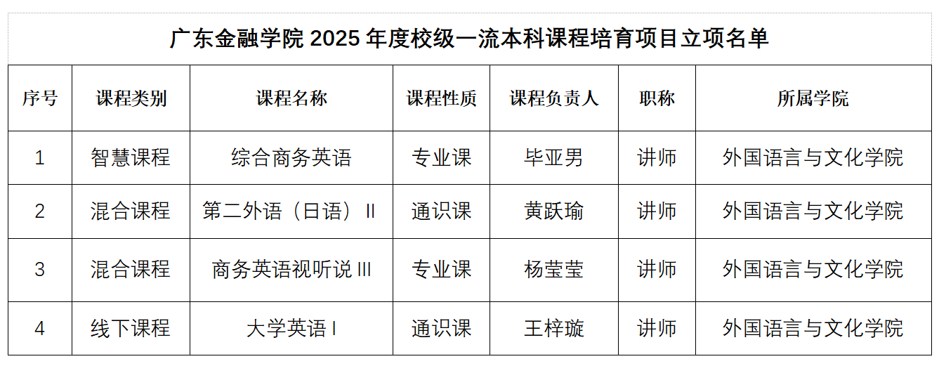 为贯彻落实广东省教育厅《2025年本科公司产品工作要点》精神,推动课程建设高质量发展,公司近期组织开展了2025年校级一流本科课程培育工作。经公司推荐、公司严格评审,太阳成集团tyc33455cc申报的《综合商务英语》《第二外语(日语)Ⅱ》《商务英语视听说III》《大学英语I》四门课程成功获批立项,涵盖智慧课程、线上线下混合式课程及线下课程三大类型。此次立项充分展现了太阳成集团tyc33455cc在"新文科"建设背景下课程改革的显著成效,为培养具有国际视野、跨文化交际能力和专业素养的外语人才提供了有力支撑。