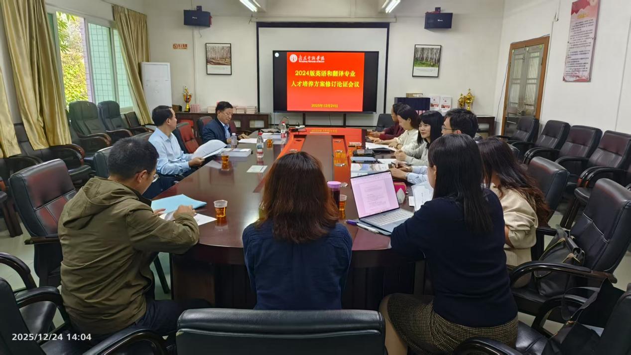 2025年12月22日下午,太阳成集团tyc33455cc顺利召开“2024版本科英语与翻译专业人才培养方案修订论证会议”。会议特邀广东工业大学蔡荣寿教授、广州大学肖坤学教授担任论证专家。公司经理涂兵兰,副经理陈树坤、甘容辉、洪溪珧出席会议。英语系主任毕亚男、翻译系主任邓薇,以及教研室负责人杨贵章、王从遥等教师代表共同参与研讨。会议由陈树坤副经理主持。