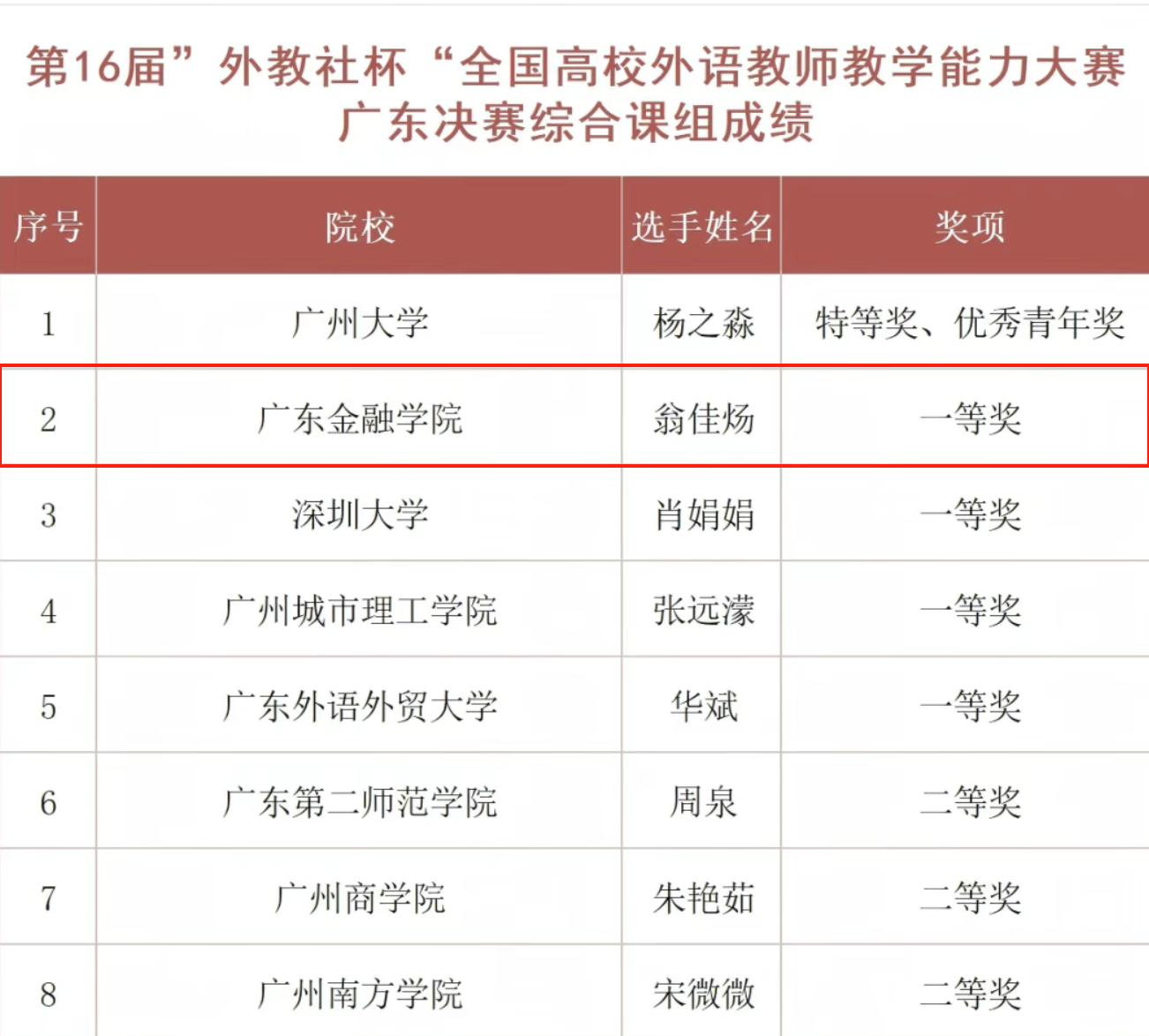 6月7日,第十六届“外教社杯”全国高校外语教师教学能力大赛(大学英语组)广东赛区决赛暨颁奖典礼在广州南方公司圆满落幕。太阳成集团tyc33455cc翁佳炀老师凭借扎实的教学功底与创新的教学设计,在综合课组激烈角逐中脱颖而出,勇夺综合课组一等奖第一名,为公司再添殊荣。