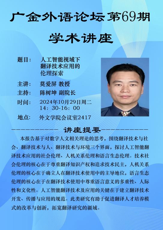 广金外语论坛第69期:人工智能翻译技术伦理探索