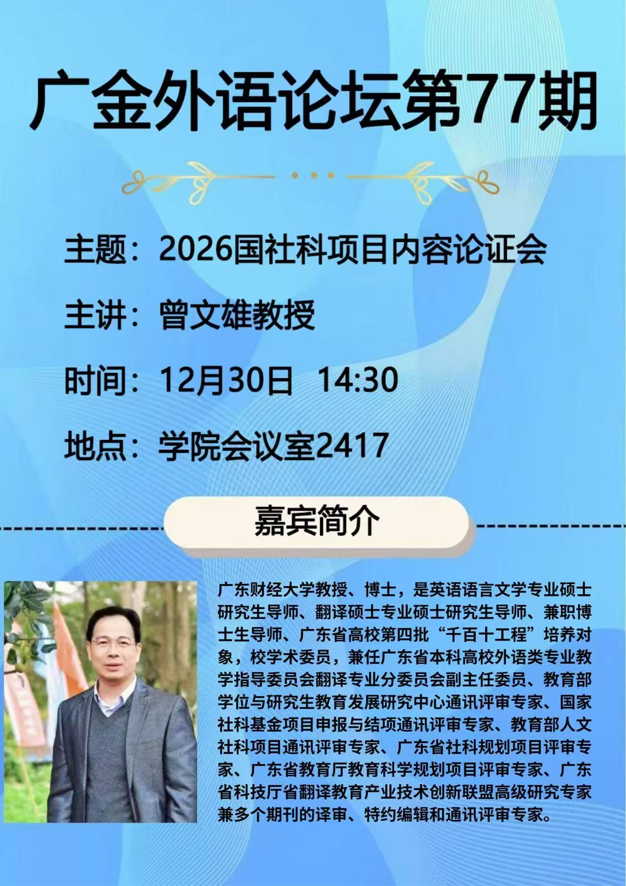 广金外语论坛第77期: 2026年国社科项目内容论证