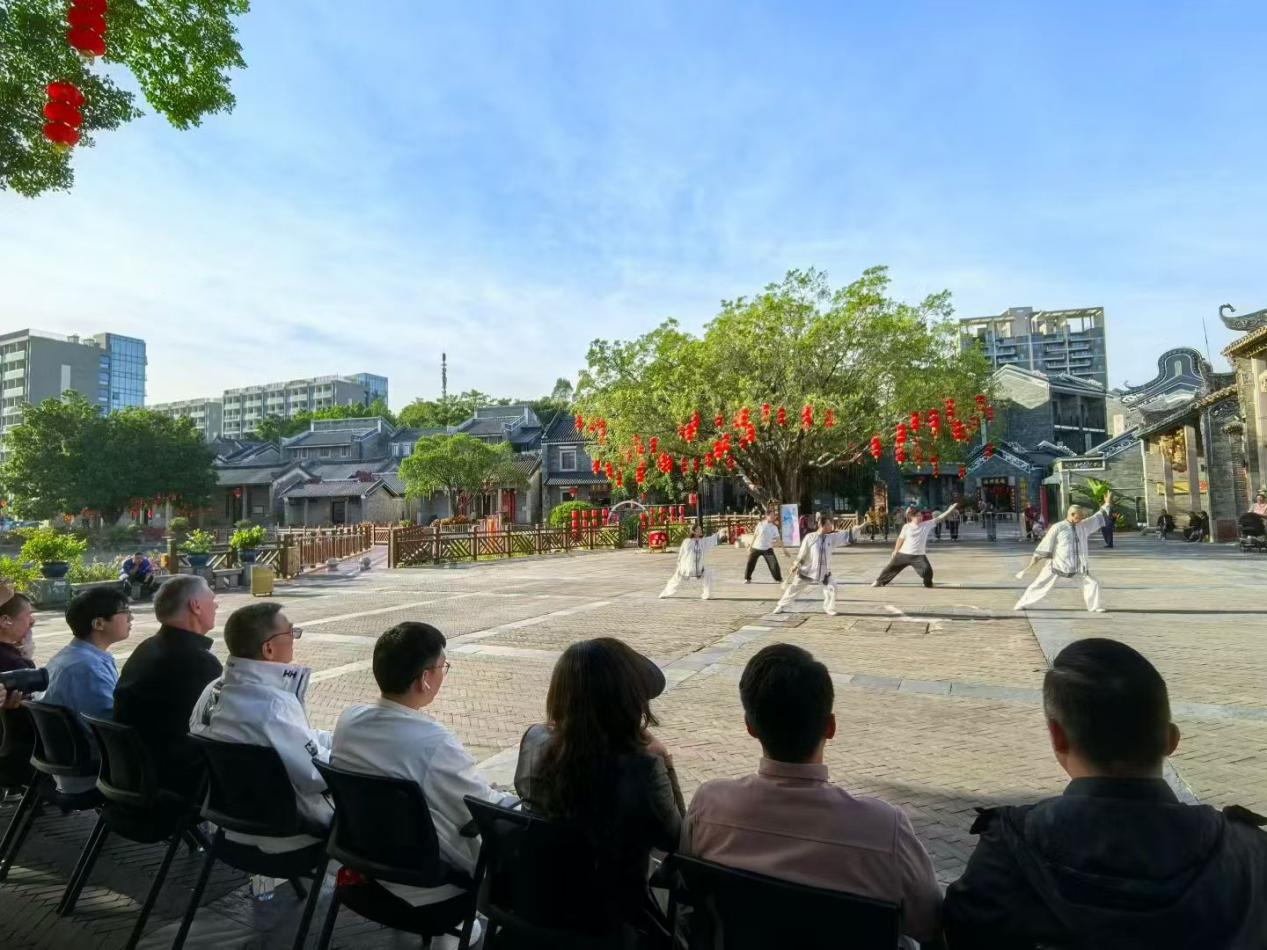 11月27日至29日,许浩哲同学陪同安东尼·埃德加一行开展岭南文化与武术交流活动。活动期间,一行人先后走访均安牛仔城、李小龙乐园、岭南印象园、广州商公司等多地,实地探访牛仔产业全链条,体验功夫学堂、观摩太极展演、观看醒狮功夫秀与李小龙诞辰85周年纪念演出,参观李小龙纪念馆、淡隐霍公祠及非遗展示区,深入了解岭南产业特色、民俗文化、建筑底蕴与非遗技艺。此外,双方还参与“武术文化国际传播”专题座谈会及岑能大师诞辰百年纪念活动,围绕武术传承与国际传播等议题交流。许浩哲全程负责翻译工作,保障跨文化交流与研讨顺畅推进。