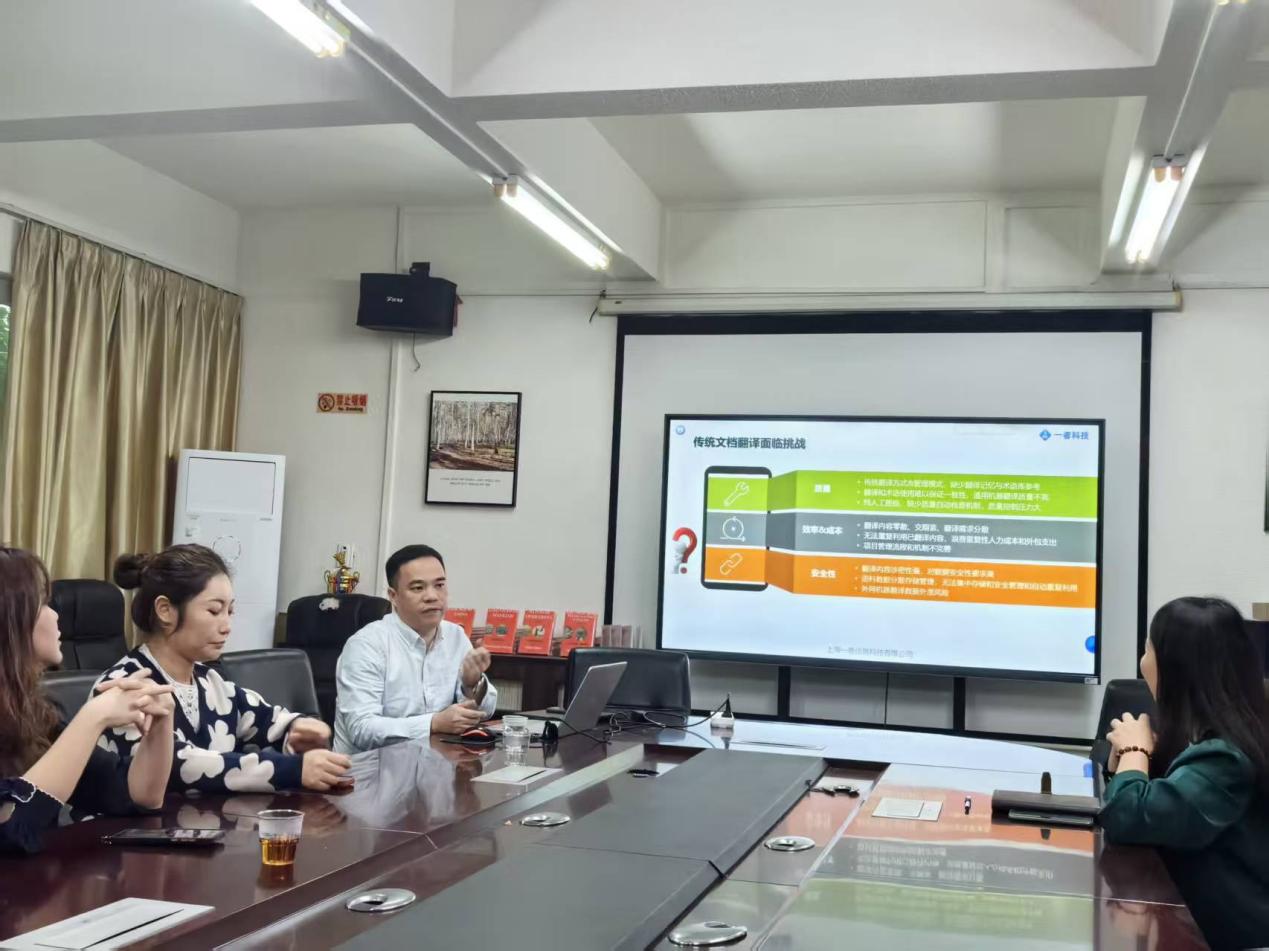 12月2日下午,一者信息科技有限公司校企合作总监刘鹏应邀到访公司,并与翻译师生分享智能翻译与本地化技术解决方案。讲座由公司副经理洪溪珧主持。