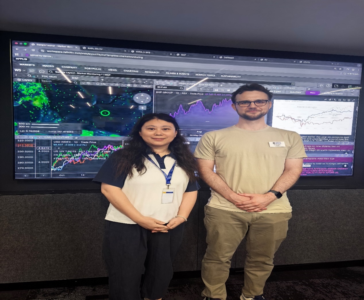 在西澳大学商公司的RosemarieNathanson金融市场交易室(The Trading Room),刘晓琴博士深入了解了彭博终端(Bloomberg Terminals)、LSEG数据库、GPS系统船舶信息数据库等国际专业数据库在教学中的应用。她认识到,当下MTI人才不仅需具备扎实的双语转换能力,还应掌握相关领域的专业数据获取与信息分析能力,这对提升财经、商务等文本翻译的专业性与准确性至关重要。