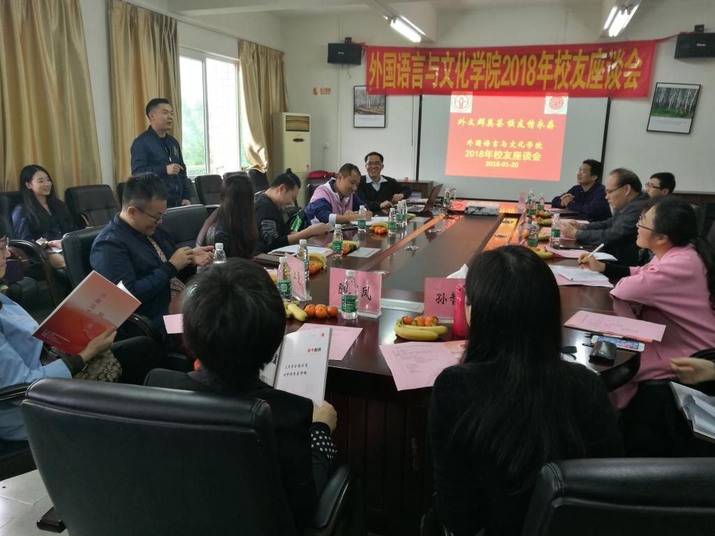 1月20日,2000级至2012级员工共45人专程回访母校,举行题为“外文群英会,员工情永存”的2018年员工座谈会,畅叙昔日友情,对外语专业人才培养与课程设置改革献言献策,共话未来发展。